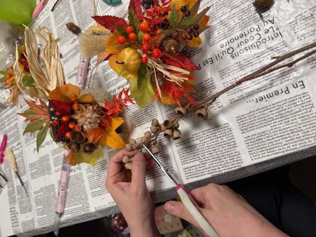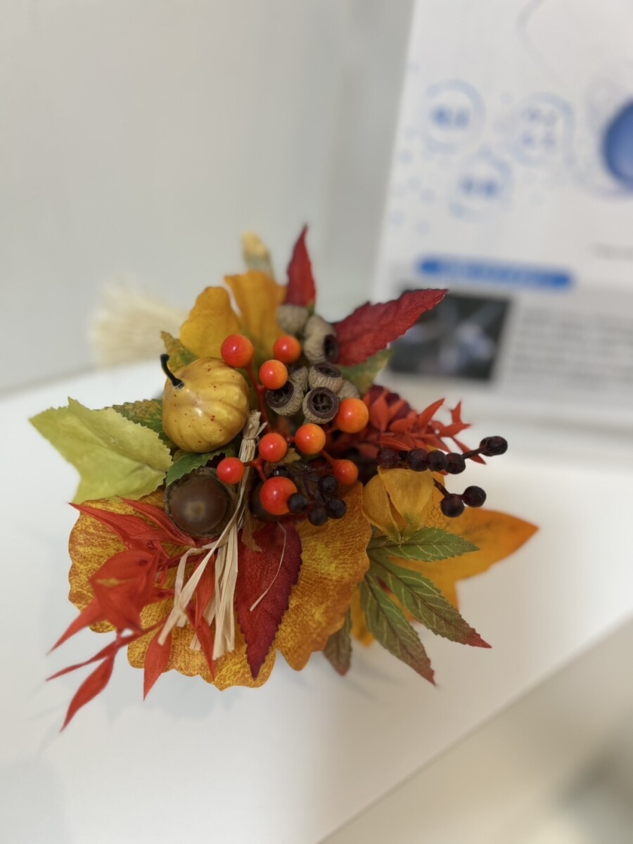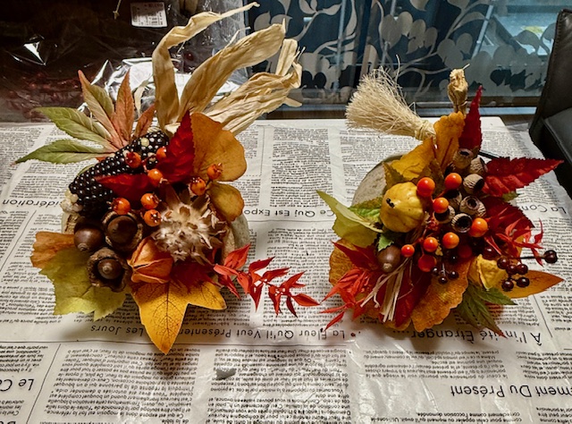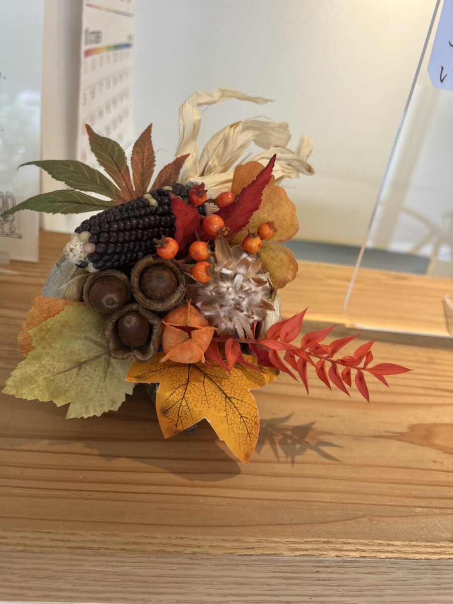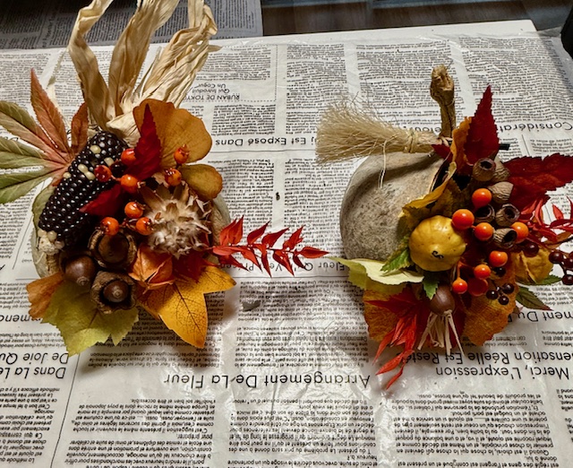 ナチュラル素材の大きな実(?)のブッタナッツを器にして 秋アレンジ