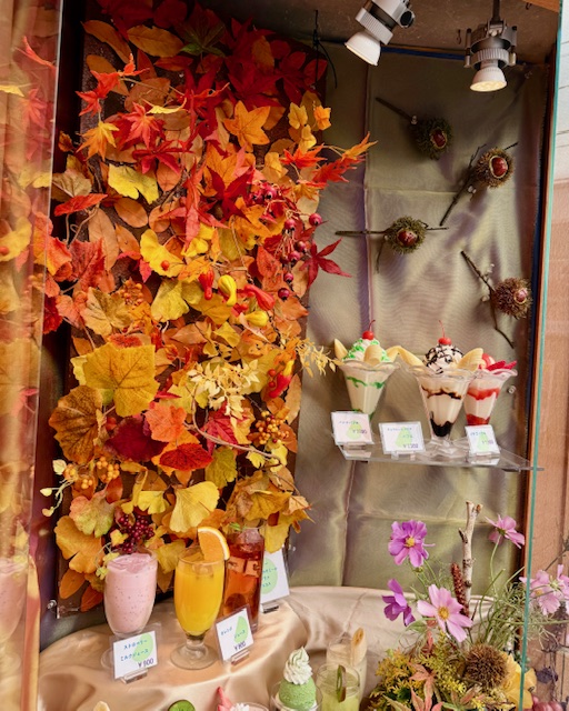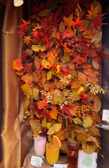 新宿三丁目喫茶「ローレル」さんのウインドウも秋に