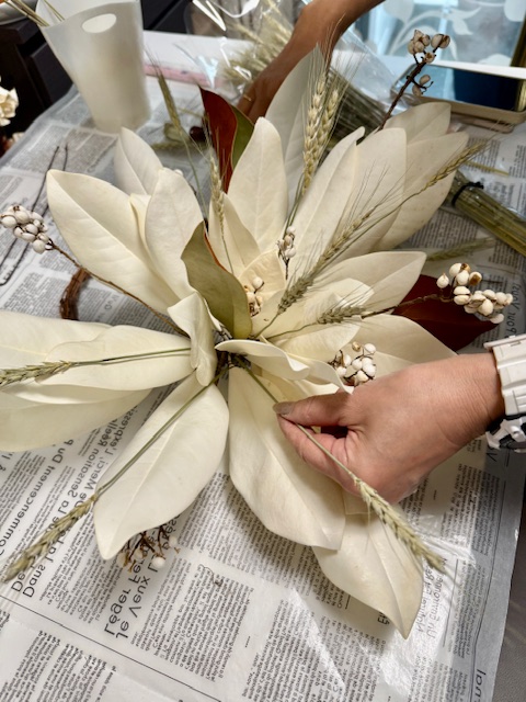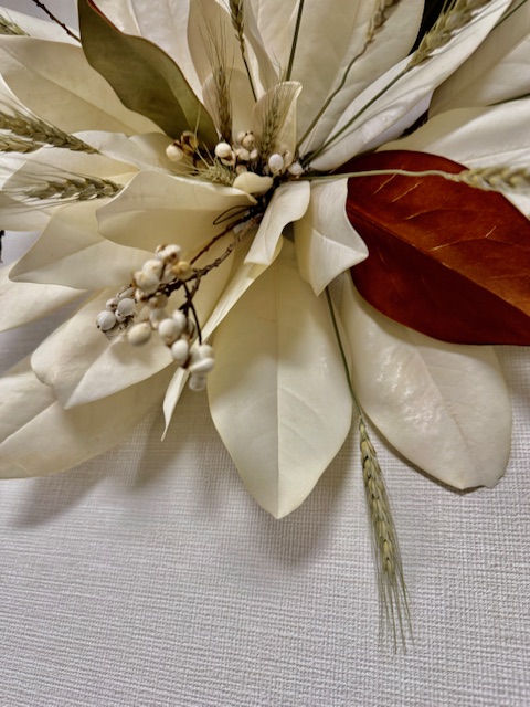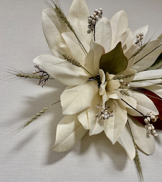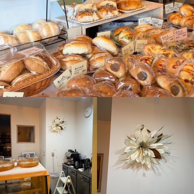 先日オープンした手作りパン屋さん「Shi-Lien」の開店祝いに「ホワイトタイサンボクリース」を生徒さんが制作されました