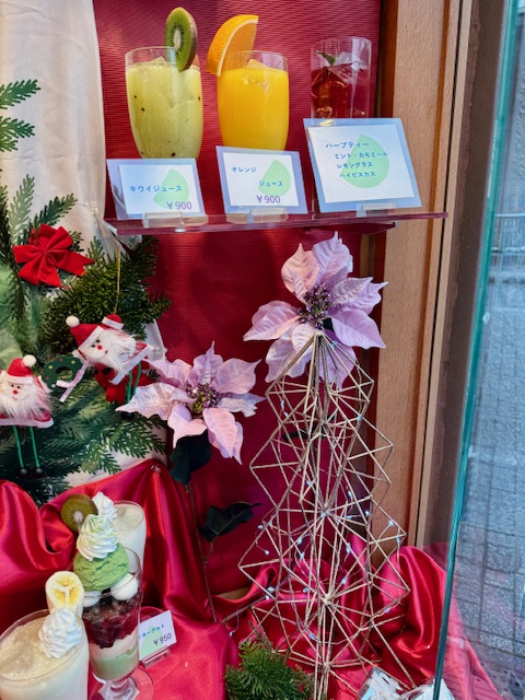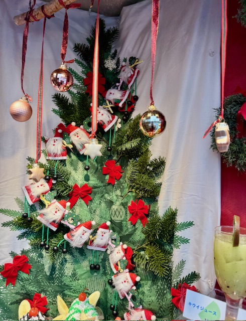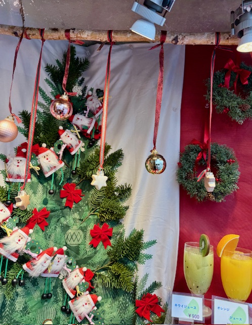 オーナーご夫婦も喜んでくださって天井からの灯りを ガーランドが映えるように下してくださいました。