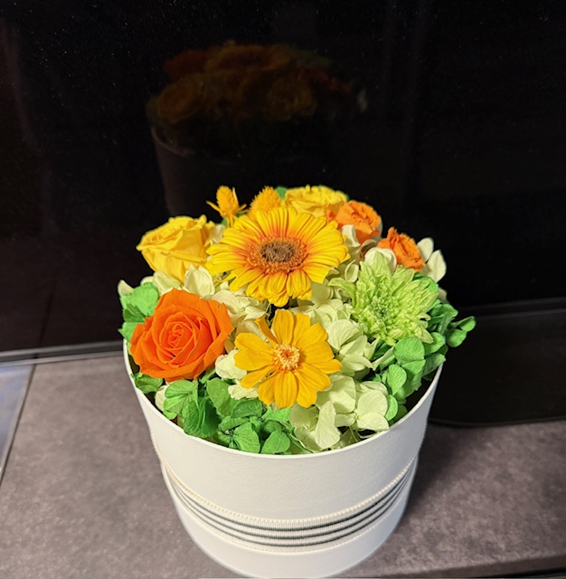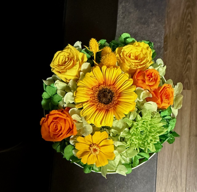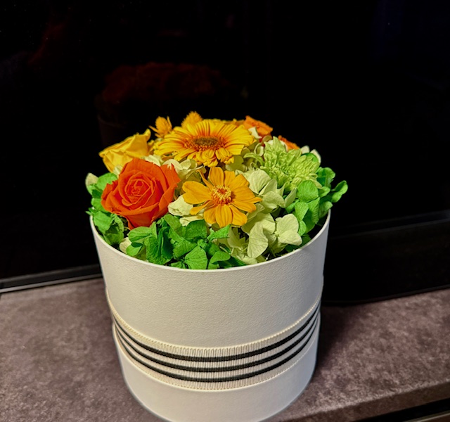 ●To さん プリザーブドの薔薇とケイトウが大人っぽい。